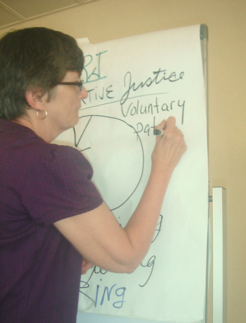 We did some teaching in Restorative Justice but with smaller groups and for 1 to 3 days only. Together with our colleagues, we chose areas of study which we felt we needed to look at such as Work Plans, Sustainability, Stress and Trauma, and an Annex to the Mediation Protocol for Sexual Aggression. We listened to each other. We cried with each other. We laughed, ate together, prayed and sang (and those of us who could, danced!). We visited in hospital and in prisons. We helped three groups obtain legal status to work in prison ministry. We set up the Petit Sanctuaire Gisenyi with furniture to receive both victims and workers. We made field visits and shared in the women’s sewing workshops. We spent a significant amount of time with authorities at various levels from municipal to national and with prison directors. We hollered at each other during card games around the table late at night.