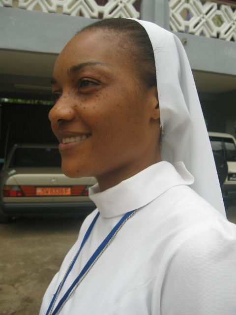 Nous avons eu le privilège de visiter la Prison centrale de Douala oú Sr Jackie travaille. J’emploie le mot ‘privilège’ car il est essentiel qu’un lieu comme cette prison soit connu de la communauté locale et mondiale. La violence, l’aggressivité et la tension étaient palpables. La prison est surpeuplée, et pendant qu’on cherchait à se frayer un chemin à travers cette marée humaine, des prisonniers frappaient du fouet d’autres prisonniers pour les empêcher de s’approcher pour nous parler ou demander de l’aide. Des armes ayant été découvertes à l’intérieur , les coupables, en conséquence, furent suspendus au mur par les chevilles et leur dos frottait sur un plancher de ciment humide et malpropre. Ils avaient l’air égaré et nous suppliaient d’intervenir devant cette infraction terrible aux droits humains. Des centaines de prisonniers étaient étendus sans rien de significatif à faire. Sr Jackie nous amena visiter le petit coin d’atelier d’arts et de couture ou avec l’aide de bénévoles on enseigne aux prisonniers la fabrication d’uniformes scolaires et de sacs à main. Un rayon de lumière et d’espoir! Les membres du personnel qui nous accompagnaient étaient nettement dépassés par l’énormité de la situation, et dans mon coeur je pouvais comprendre comment ils deviennent paralysés devant tant de situations désespérées. Seul un appel divin peut permettre aux aumôniers de retourner à chaque semaine dans un tel endroit.