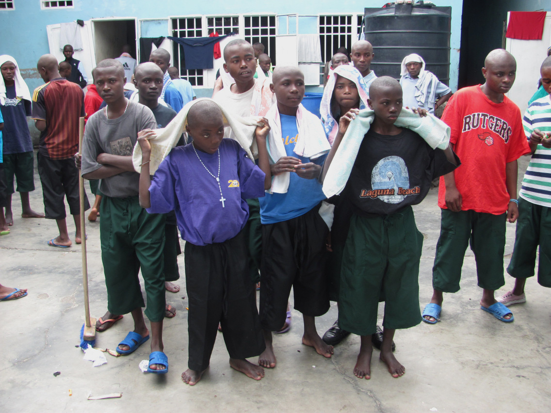 ‘La guerre aux puces’ débute donc en décembre 2013. Vingt-cinq travailleurs de l’aumônerie s’attaquent avec vadrouille et savon aux murs de la prison et soumettent les jeunes à un grand lavage. Chaque détenu est rasé à bol, examiné médicalement et reçoit une trousse avec serviette, savon et habit de rechange. On procède à l’achat de nouveaux matelas et remet à chacun une couverture. Il y a des jus pour étancher leur soif et les efforts sont renouvelés pour encourager la collectivité à contribuer de la nourriture à chaque semaine. Bien que la situation demeure très difficile, elle en est maintenant moins à l’état de crise. Au cours des derniers six mois, nous sommes responsables pour l’accueil des nouveaux venus - une trentaine par mois, avec douche, rasage et remise d’une trousse personnelle. Notre équipe médicale les examine régulièrement. Un programme d’alphabétisation et d’apprentissage à la vie voit le jour dans une classe meublée de bancs et d’un tableau noir. Nos défis constants demeurent l’eau saine, le savon et suffisamment de nourriture.